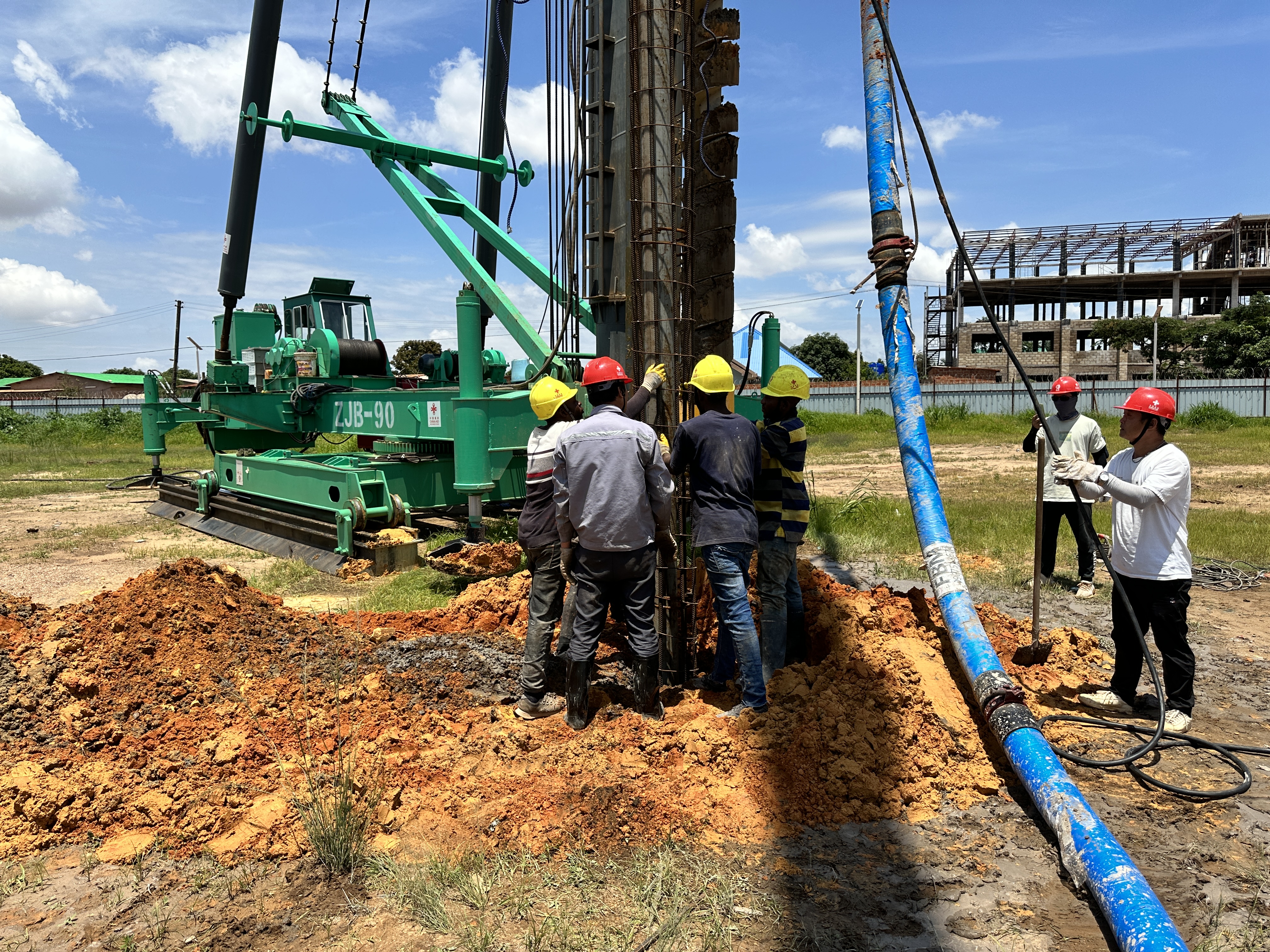 援剛果(金)職業(yè)技術(shù)培訓(xùn)中心項目是落實中非合作論壇北京峰會成果,“八大行動”中能力建設(shè)的載體。項目建成后,對提高當?shù)芈殬I(yè)培訓(xùn)水平、帶動當?shù)鼐蜆I(yè)、更好地建設(shè)國家職業(yè)培訓(xùn)體系具有重要作用。面對開工前期的重重困難,項目團隊緊密團結(jié),迎難而上,搶抓開局,協(xié)調(diào)人員、機具、材料有序入場施工。目前項目已順利進入工程樁施工階段,在保證質(zhì)量至上、安全第一的前提下,項目全體成員鉚足干勁,加班加點搶進度。
