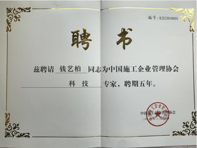 3月28日,在西安召開(kāi)的中國(guó)施工企業(yè)管理協(xié)會(huì)科技工作會(huì)議上,集團(tuán)總裁助理、副總工程師、教授級(jí)高工錢藝柏同志被聘為中施協(xié)科技專家。