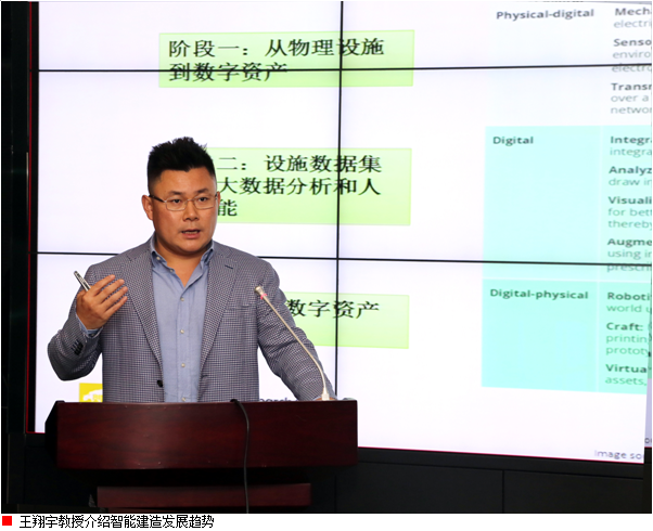 講座上,王翔宇教授介紹了澳大利亞BIM研究中心的情況,相關(guān)工程中BIM應(yīng)用以及展望,并對(duì)智能建造、精益建造、綠色建造、裝配化建造等前沿理念和技術(shù)方面進(jìn)行了闡述。