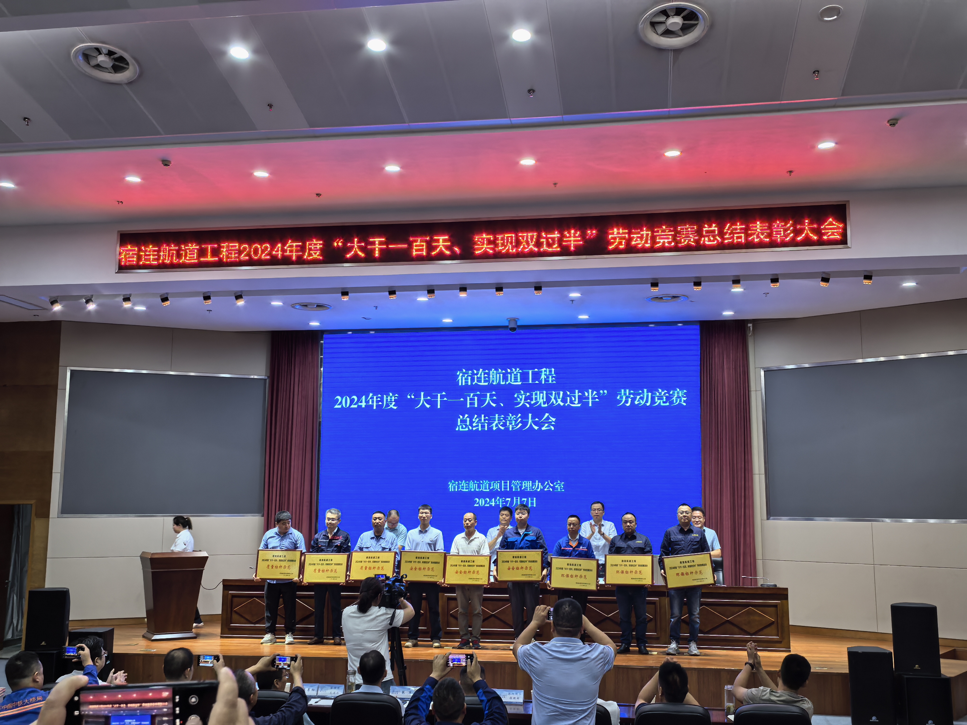 7月7日,宿遷市航道重點工程建設指揮部召開宿連航道工程2024年度“大干一百天 實現(xiàn)雙過半”勞動競賽總結(jié)表彰大會。由江蘇交工承建的宿連航道二期5標在勞動競賽中表現(xiàn)出彩,屢創(chuàng)佳績,捧回四項榮譽。