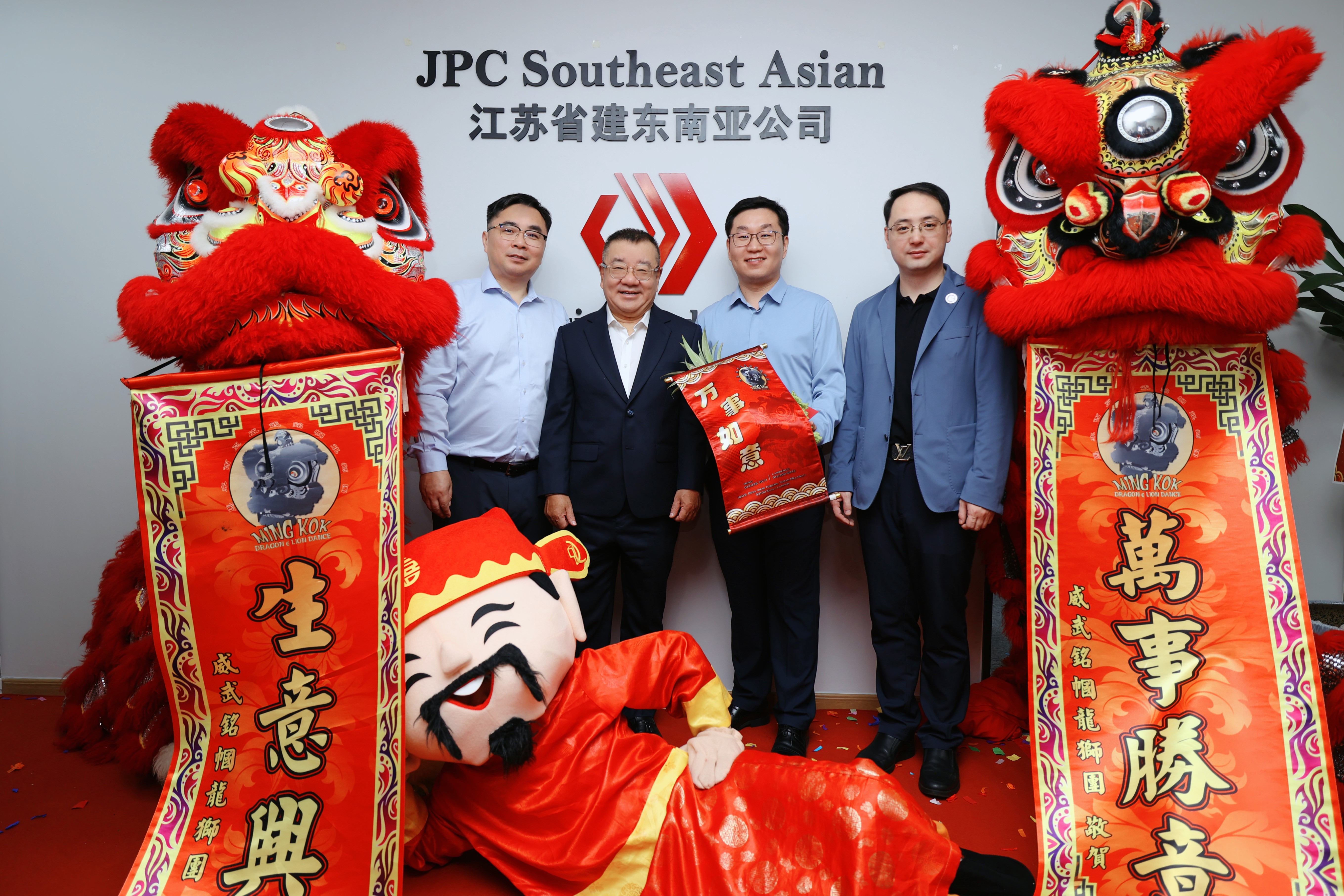 在熱烈的掌聲中,金紅雙獅騰躍起舞,蔣寧和出席活動的領(lǐng)導嘉賓共同為東南亞公司總部揭牌,嶄新的招牌在獅舞祥瑞中熠熠生輝,標志著集團海外事業(yè)發(fā)展邁向全新階段,開啟全新征程。