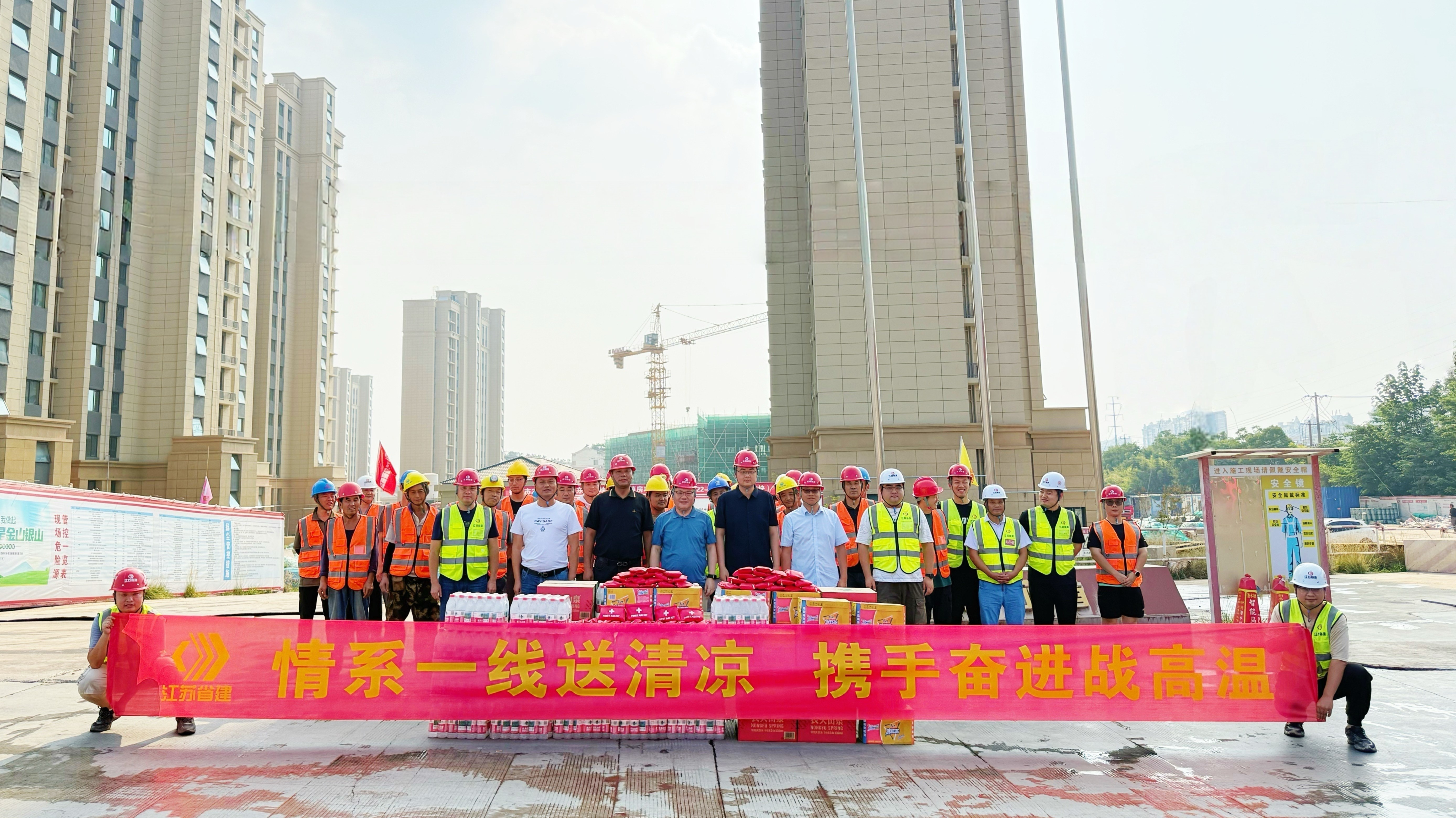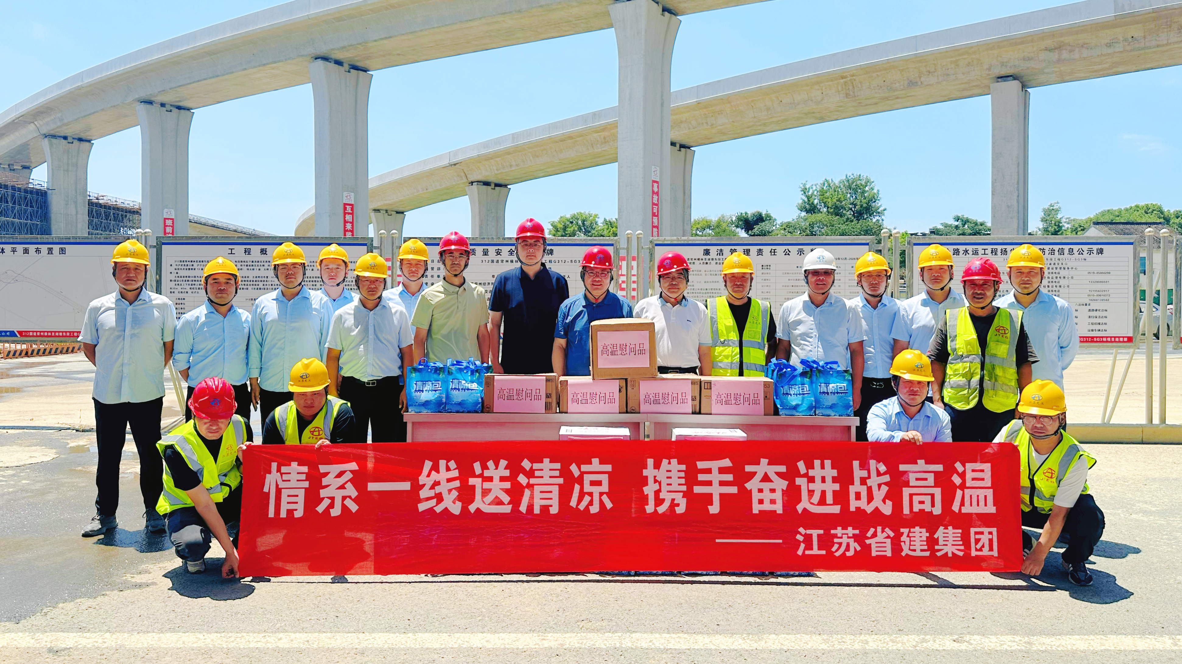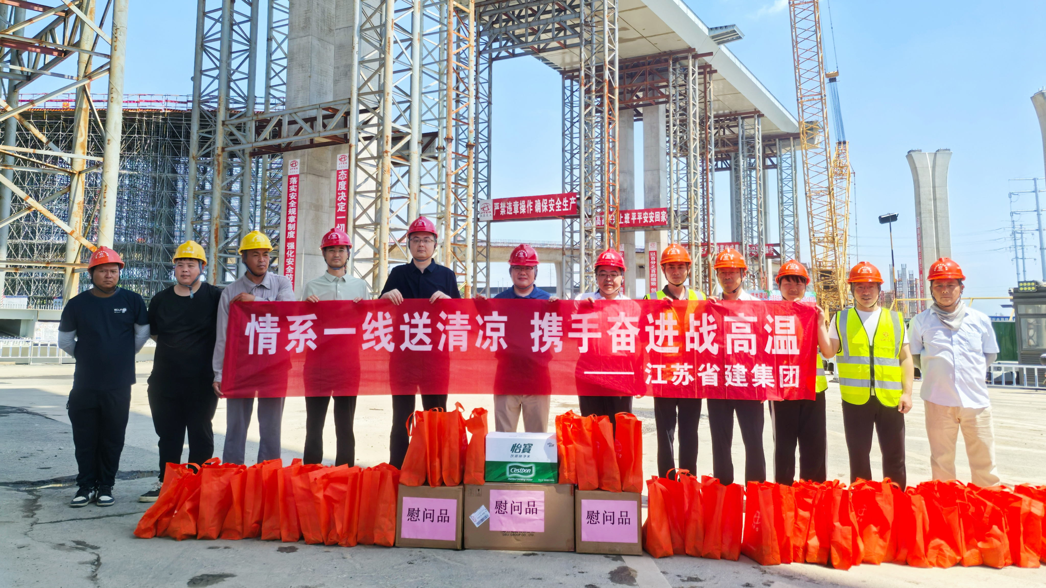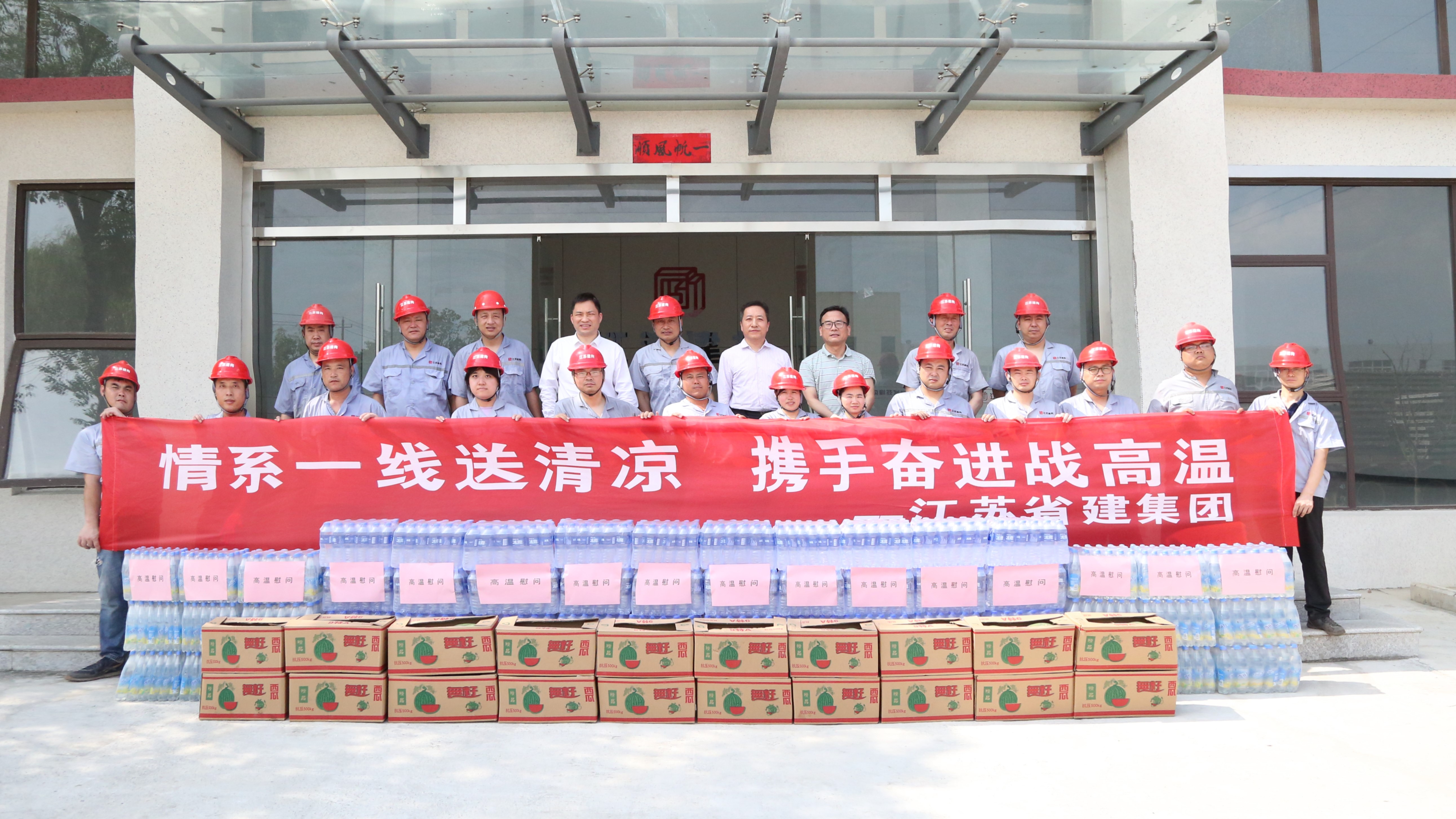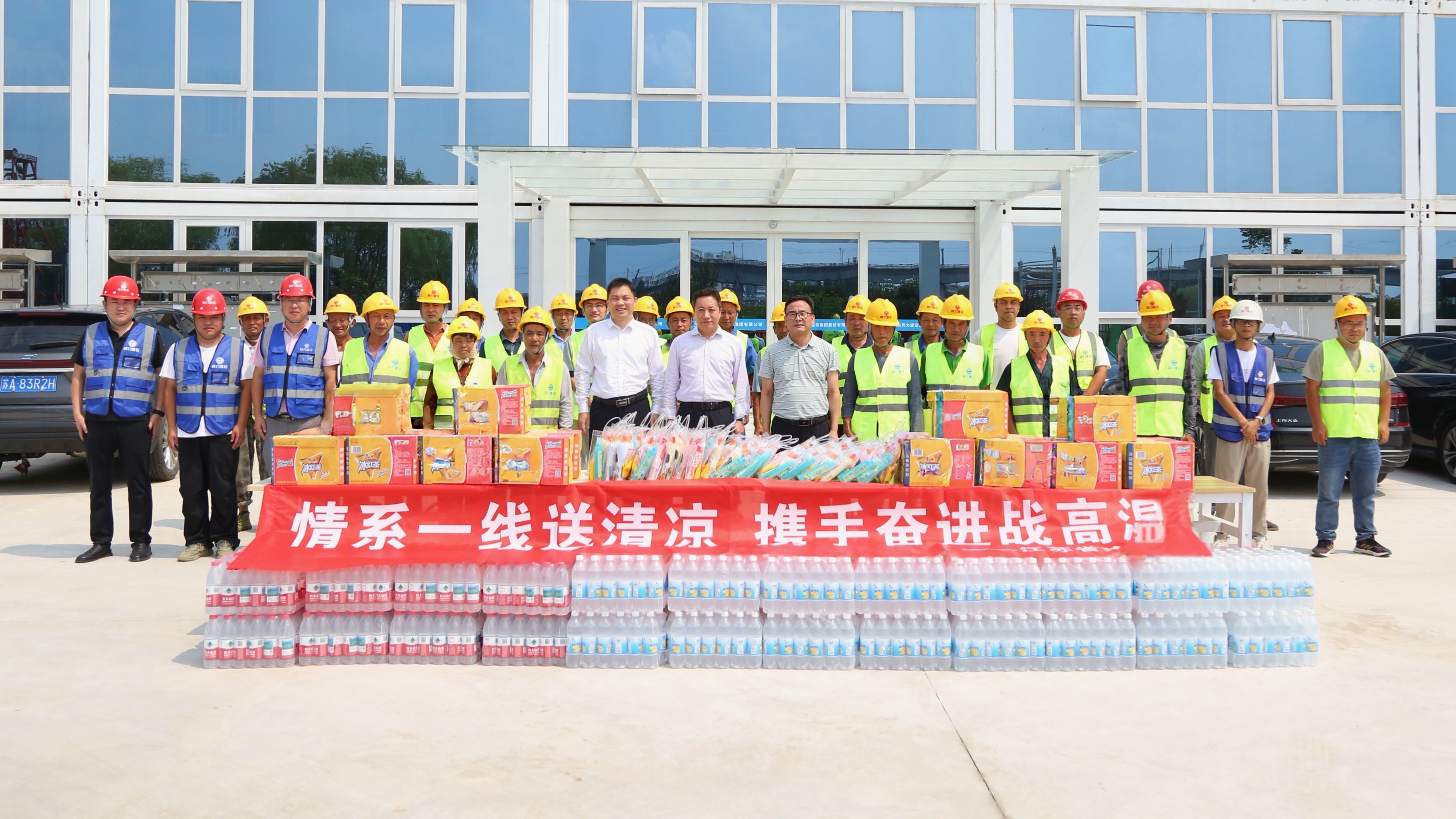 炎炎夏日送清涼,情意深深暖人心。為切實(shí)做好高溫天氣下的安全生產(chǎn)工作,保障一線廣大員工的身心健康,7月17日,集團(tuán)黨委書記、執(zhí)行總裁張震宇,副總裁高寶儉分別帶隊(duì),深入南京城東污水處理廠、312國道、湯山PC工廠等項(xiàng)目和生產(chǎn)車間,看望慰問在高溫下堅(jiān)守崗位的一線員工,為他們送去防暑降溫物品。