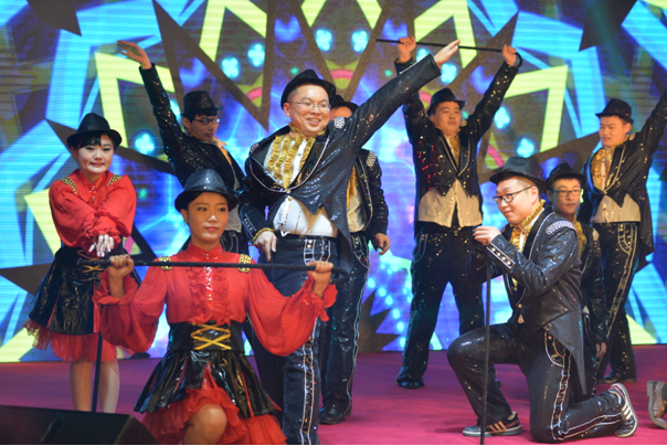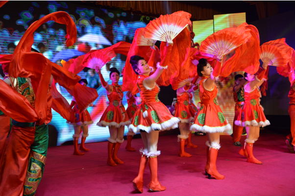 來自集團(tuán)泰州華澤置業(yè)的員工以喜慶熱烈的舞蹈《歡天喜地》拉開了整場(chǎng)酒會(huì)的序幕。歌舞、表演唱、魔術(shù)、相聲、小品等節(jié)目輪番登場(chǎng)。整臺(tái)酒會(huì)異彩紛呈,贏得全場(chǎng)觀眾的一致贊嘆。表演唱《時(shí)光的行囊》、相聲《給嘴開光》展現(xiàn)了江蘇省建人58年來心懷國家富強(qiáng)和民族振興的崇高使命,自強(qiáng)不息,任勞任怨,為我國城市建設(shè)默默奉獻(xiàn)的精神風(fēng)貌。舞蹈《小蘋果》、歌舞《新貴妃醉酒》、魔術(shù)《大變活人》、爵士舞《大眼睛》、小品《江蘇省建新聞聯(lián)播》和歌曲《make you feel my love》演繹得美輪美奐,給人以視覺的享受與心靈的震撼。激光鼓《省建龍》則展示了省建人對(duì)未來的美好展望,契合了喜迎新春的主題,將整個(gè)晚會(huì)推向了高潮。